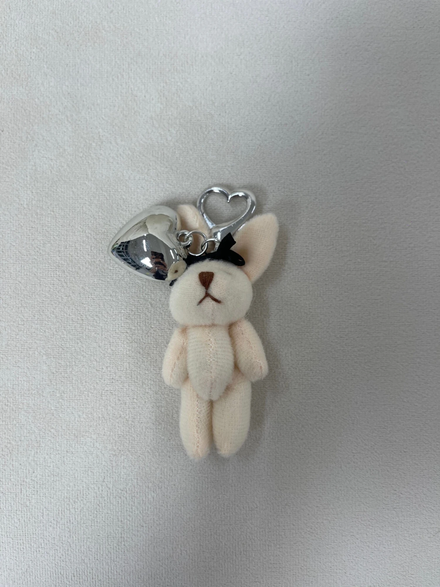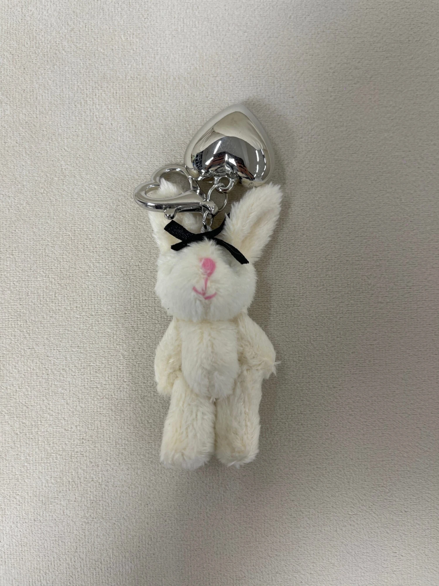 Elevate your accessory game with the Fluffy Bunny Bag Charm with Silver Heart, and let this sweet and whimsical companion bring a smile to your face and a touch of elegance to your day.
