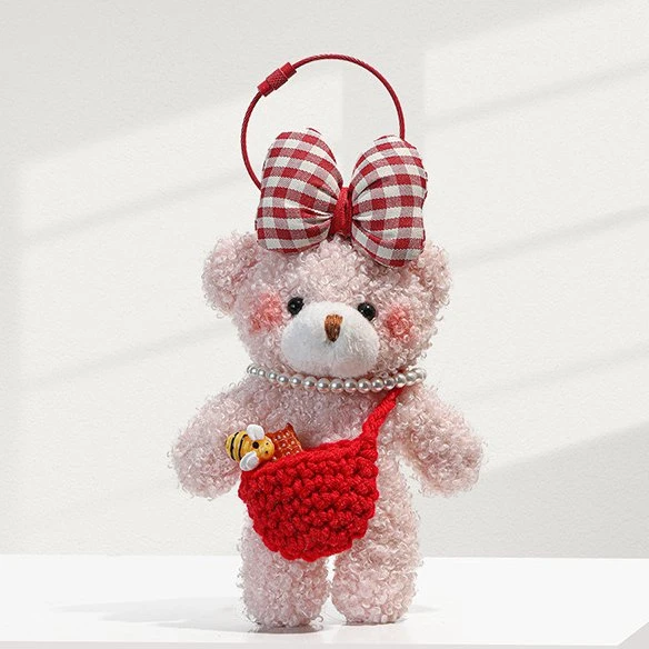 Combine vintage flair with cuddly charm using our Gingham Bow Pink Teddy Bear Bag Charm. This darling pink bear, adorned with a classic red and white gingham bow and tiny red bag, brings a touch of nostalgic sweetness to your accessories. Its unique color combination and adorable details make it a standout charm that’s sure to become a favorite addition to your bag or keychain collection.